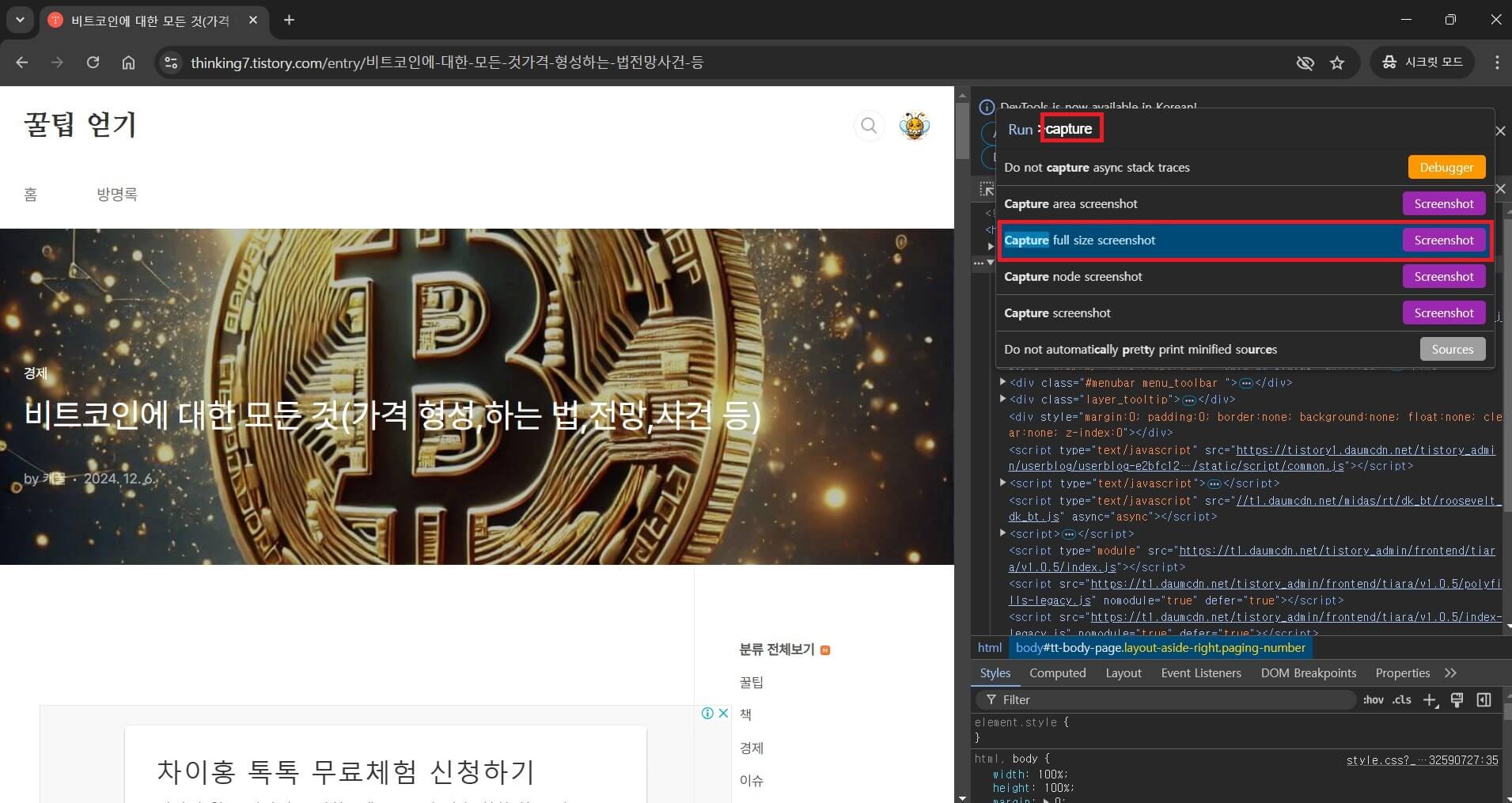 크롬 브라우저로 인터넷 화면 전체 스크롤 캡쳐(스크린샷)하는 방법